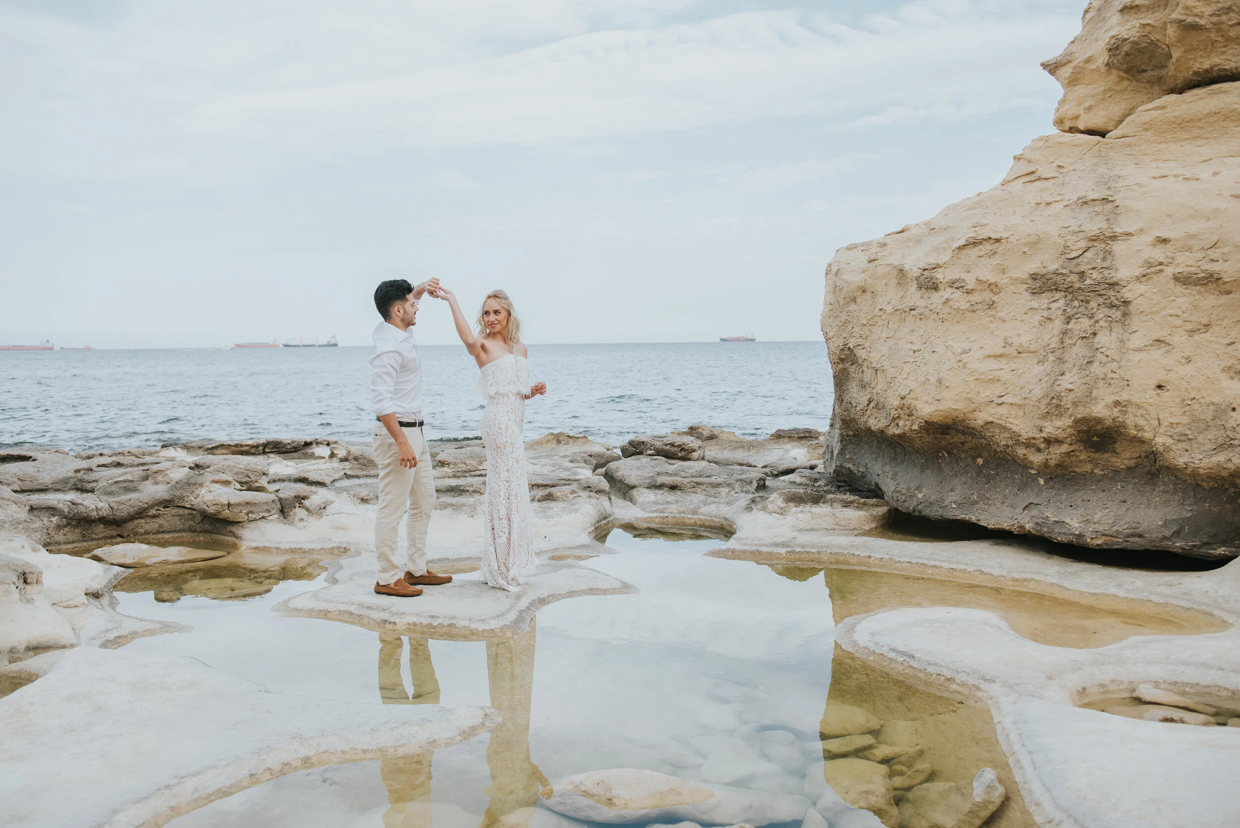 I recently went on a trip to Malta where I spent the week with a lovely group of photographers. We had so much fun exploring the island and planned to do a styled elopement shoot with a gorgeous couple at St Peter’s Pool which is one of the most stunning natural swimming pools in Malta. It has a stunning coast line and is a popular snorkelling and cliff diving location.